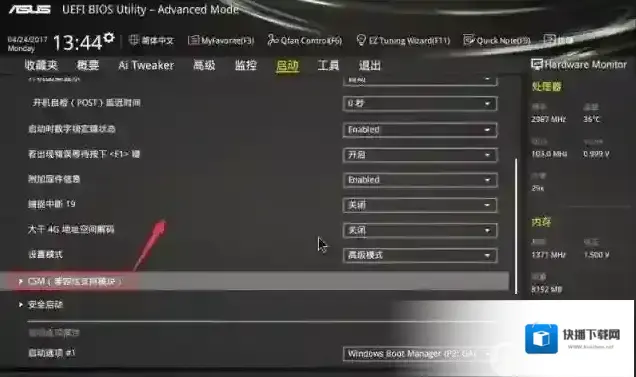 3、我们往下拉,然后进入csm(兼容性支持模块),如下图所示;