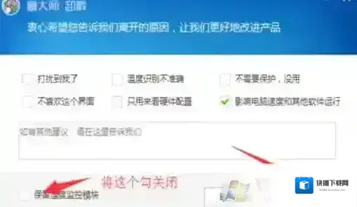 通过以上步骤,我们就可以把鲁大师卸载干净了,第6步大家一定要记住,取消勾选保留温度监控模块,鲁大师主要会用这个模块来推送广告。