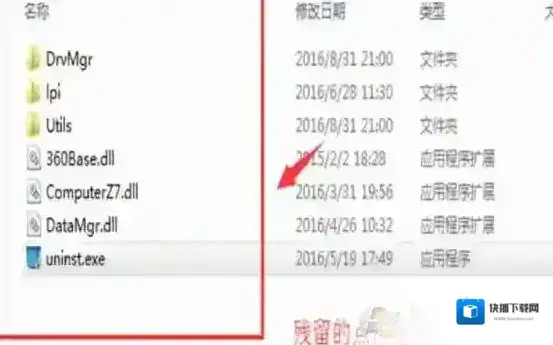 7、之后,最后一步是清除残留。在卸载程序的界面中,其余的都是无用的文件夹。右键单击并删除。