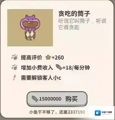 属于厨房设施,属于最高级的垃圾桶类别,解锁此项设施前提是必须解锁客人小c,客人 小c 就是餐厅工作人员 大厨咕咪 一直苦苦寻找的主人。