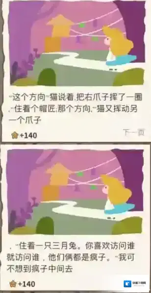 3、柴郡猫给爱丽丝指路,一条路通往一个 帽匠 的家里,一条路通往一个 三月兔 的家里。这两位角色只在这里出现了。