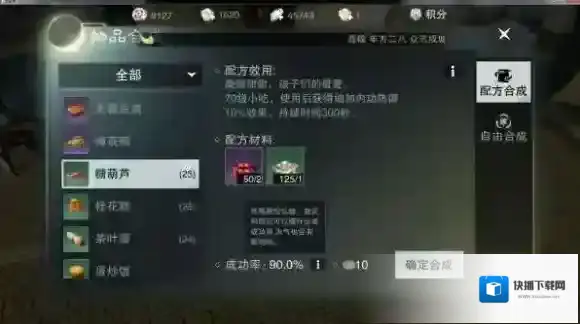 配方合成需要的东西有:食物相应的配方-食物相应的材料-充足的体力-少量的金钱消耗。