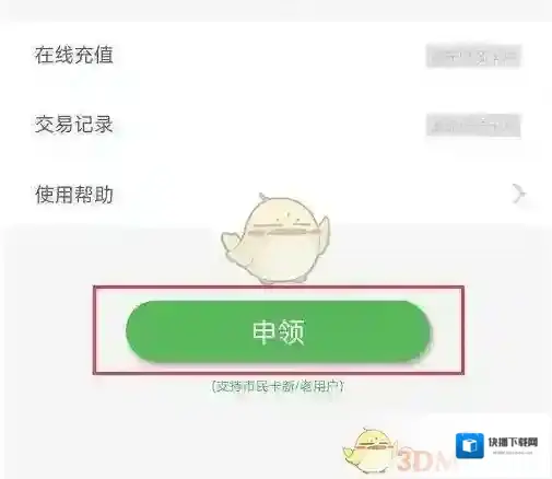 4、进去市民卡之后,点击申领,可以进行申领市民卡。
