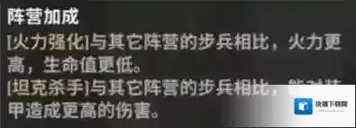 强权步兵伤害更高,拥有更高的穿甲属性,攻击坦克时可以造成更高的伤害,只是血量是三个阵营里最低的,使用时要注意噢;