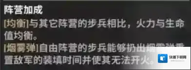 自由步兵能力比较均衡,另外有个特殊的“烟雾弹”技能,可以使敌方短时间无法攻击。比如攻击火炮单位时,由于火炮单位有3s左右的攻击间隔,烟雾弹会重置攻击间隔,并使其短时间无法攻击