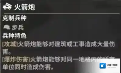 秩序火箭炮是秩序的特色兵种,输出非常高,杀伤范围大,而且移动速度还快,打步兵以及绕后有奇效;