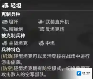 轻坦主要是后期时保护后排脆皮不被空军轻易秒杀,起到保护作用,是目前唯一一个能攻击空军的陆军,必要的时候还是非常有用的;