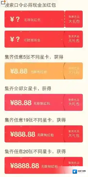 1、打开聚美App搜索口令“看快本集星卡抢欧哥”,不但能获得无门槛现金券和可提现余额,还能获得随机星卡一张,开启聚美301集星卡活动。
