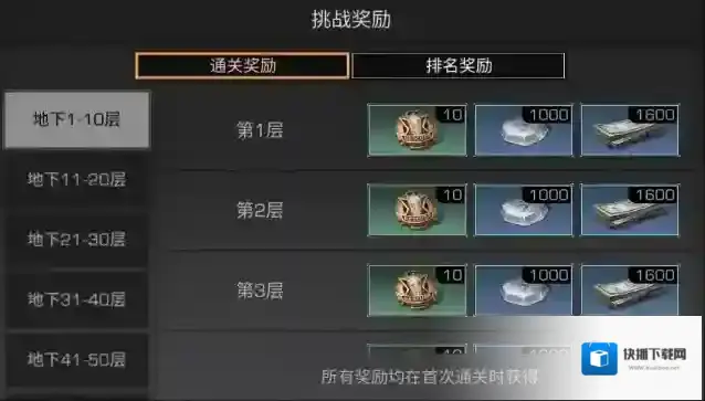 在倒悬诡楼的挑战过程中每通关一层都可以获得相对应的驰援徽章、技能点、新币*详情请查看游戏内倒悬诡楼挑战奖励02排名奖励