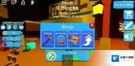 积累一定数量的金币后,你可以前往标有购买标识的商人处购物,进入黄色圈圈后,会弹出商店界面,分为工具、背包、装扮(包括发型、宠物等)和重生商店(提供各类道具)四个分类,在游戏前期,建议主要购买更高级的工具和背包,以减少返回地面的次数,提高挖掘(赚钱)效率,拥有高级道具后,你可以深入更下层的矿洞挖掘,有机会挖到更好的矿石,如金箱子、钻石等,但请注意,这些矿石所需的挖掘工具级别也会相应提高。