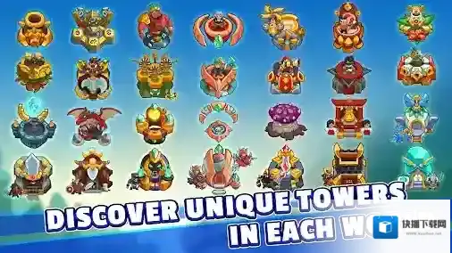 1、超过300到精彩的关卡可以尽情挑战,多个主题世界任你探索,每一个世界都有着专属的四座防御塔。