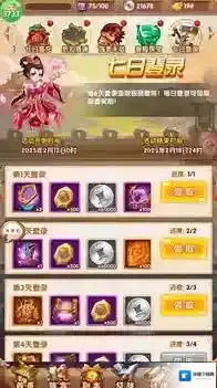 2、七日登入,每日领取海量道具礼包福利。