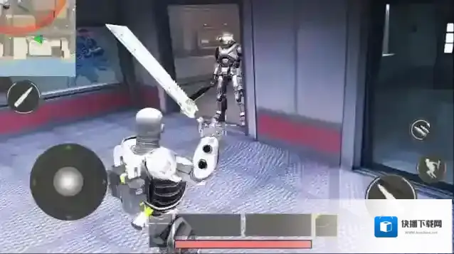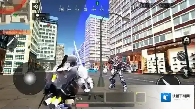 2、利用虚拟摇杆控制机甲移动,在废墟战场中搜寻敌方与补给资源。