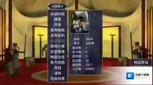 1、内政经营需精细,每年一月进入内政模式,通过执行搜索、开发指令提升城市实力,合理分配武将任务。