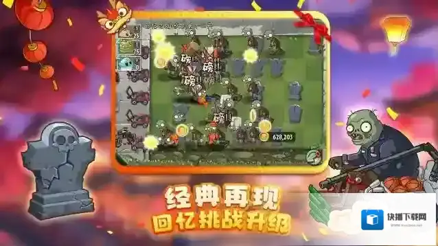 寻找克制植物战斗,无限阳光生产,大量丧尸不断攻击,卡通动画图片。