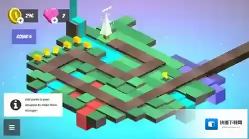3、游戏过程中,收集金币、粉钻,在路径关键位置补建塔,还可给武器加【perks】增强战力。