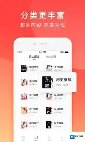 4、特色频道划分,打造男生、女生专属的阅读空间;
