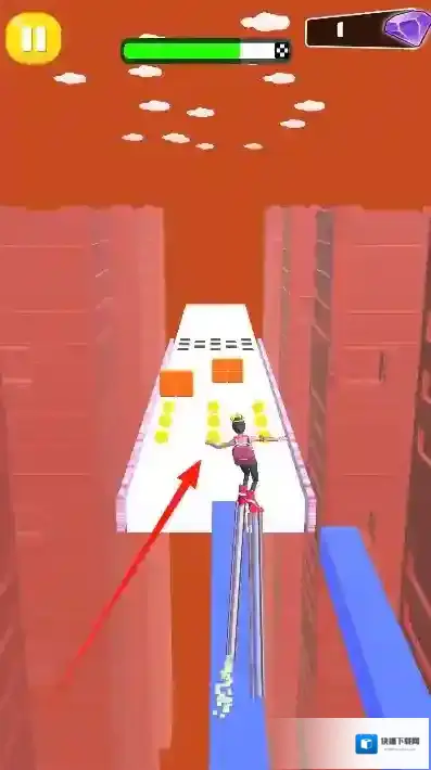 1、基础跑酷玩法:滑动屏幕控制角色左右移动,收集赛道瓷砖增高鞋跟,躲避随机出现的障碍,目标抵达终点获取星级评价。