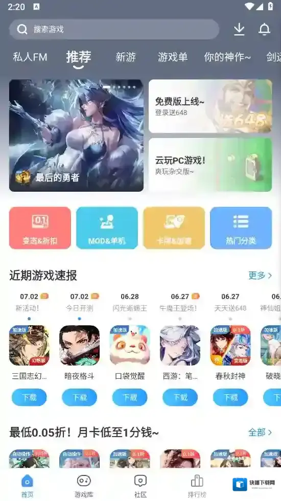 2、在游戏库中我们可以挑选多种不同类型的游戏,有联机手游、端游移植、抖音热游等板块,都可自行选择。